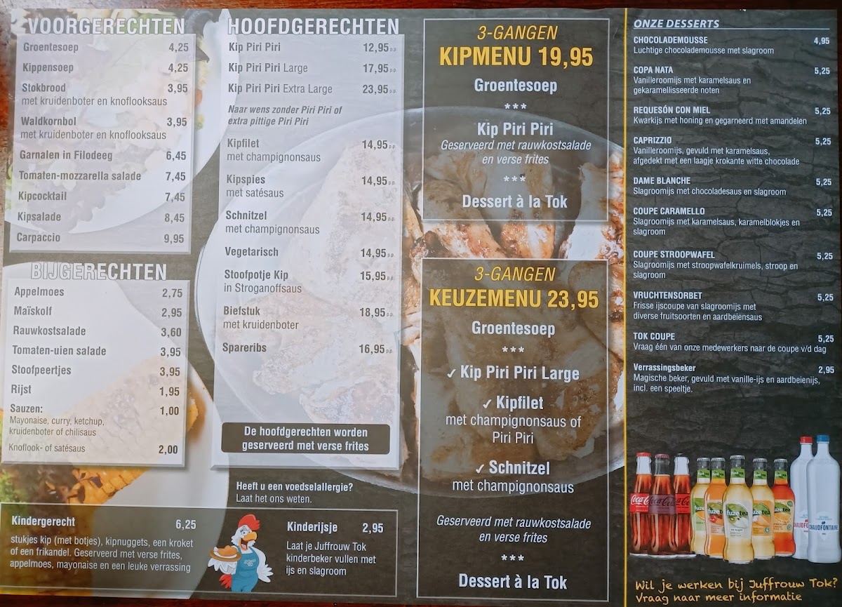 Welcome to Juffrouw Tok Ede, a charming restaurant nestled in the heart of Ede, Netherlands, where the star of the show is undoubtedly the succulent grilled piri-piri chicken. Located at Verlengde Arnhemseweg 101, this delightful eatery offers a cozy ambiance, perfect for dates or family gatherings. The friendly staff and warm, farm-style decor create an inviting atmosphere that resonates with visitors.